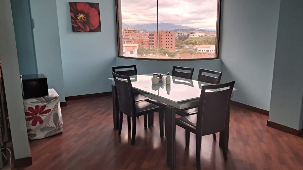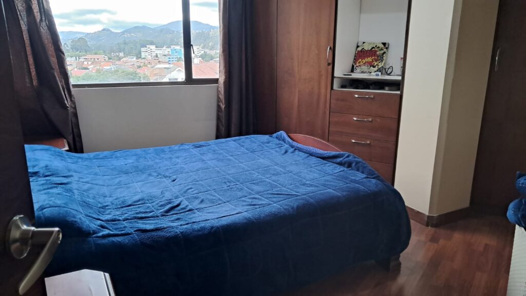 Ubicado a pocas cuadras del Parque de la Madre y del centro histórico de Cuenca. Cerca de restaurantes, hospitales y supermercados. Cuenta con 3 recámaras con maravillosas vistas de la ciudad de Cuenca desde todas sus áreas. Dos baños completos, cocina con encimeras de granito y amplios gabinetes, una cómoda sala de estar y un acogedor comedor.