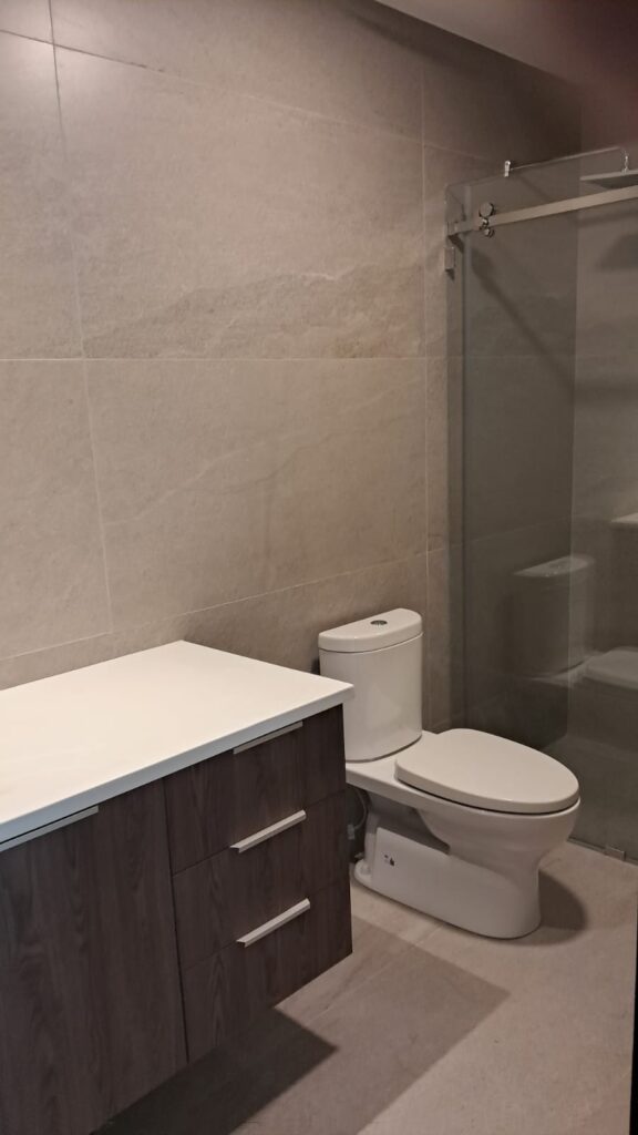 - Acabados: Pisos de porcelanato de gran formato, carpintería de alta calidad y grifería moderna.